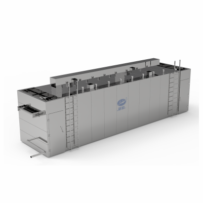 設(shè)備主要?于?制品、?制品等休閑?品,主要對產(chǎn)品進?烘?/烘烤、?冷(選配?藝段),烘?采?蒸汽換熱器進?換熱,烘烤采?遠(yuǎn)紅外線進?加熱,產(chǎn)品在烘?區(qū)域、烘烤區(qū)域進?往返連續(xù)式輸送,以達(dá)到所需要?藝時間,整體加熱過程為?動檢測溫度恒溫,?動檢測濕度排濕,內(nèi)部?能?動循環(huán),節(jié)約能耗,選配?藝段